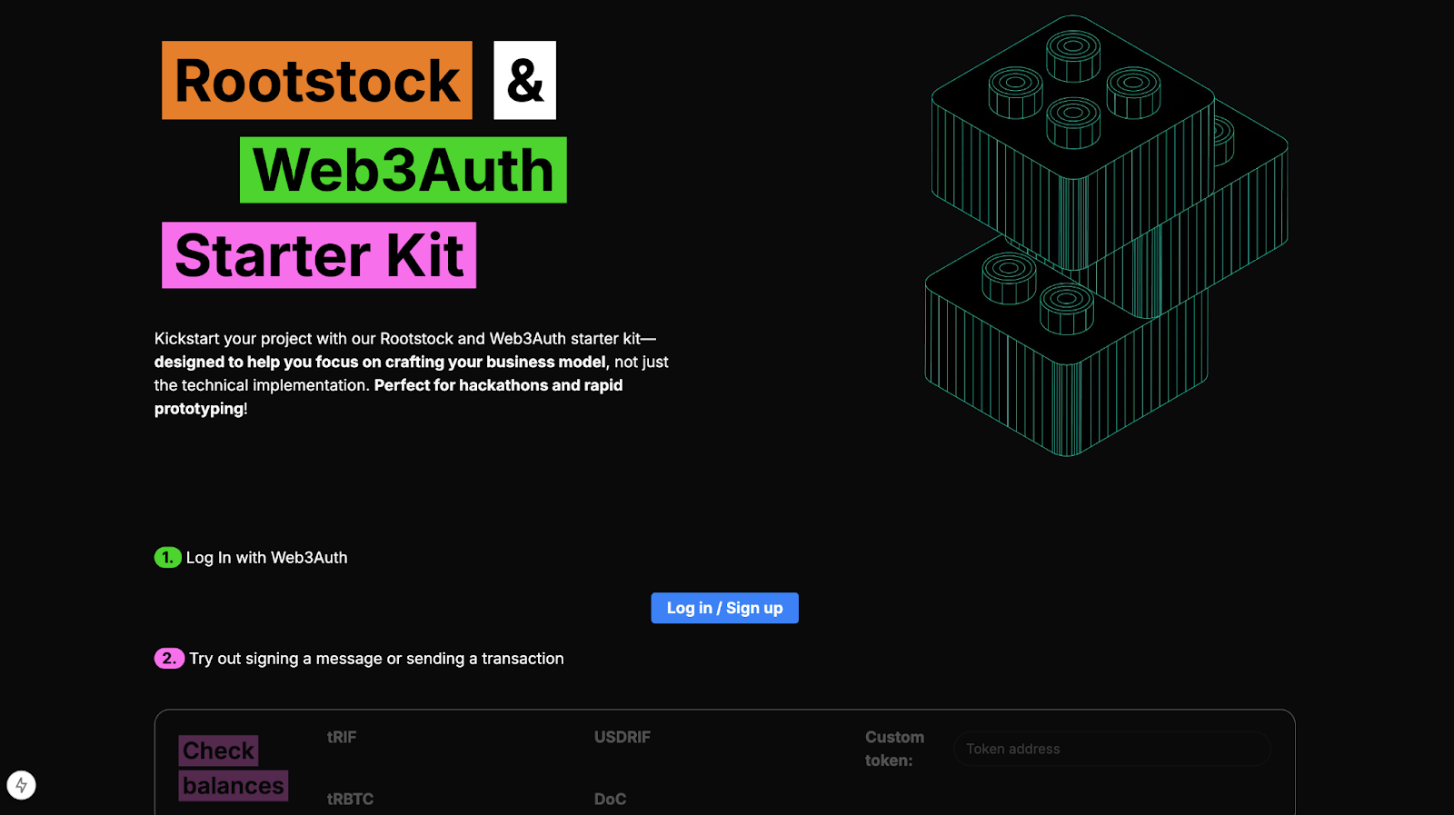 - You should see the Rootstock & Web3Auth Starter Kit welcome screen.